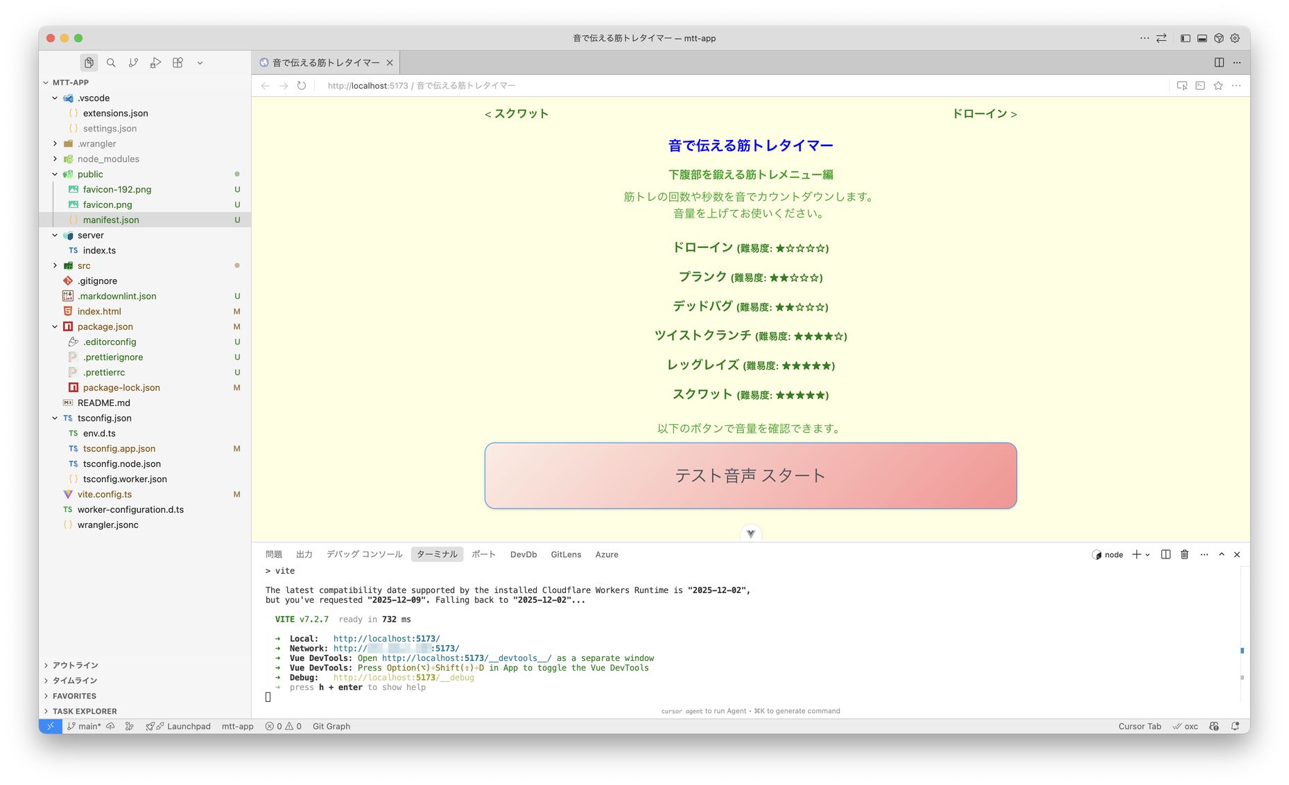 Section titled “C3を使ってWorkerプロジェクトを新規作成する”公開中のSPA(筋トレタイマー)をCloudflare Workersに移行してみます。