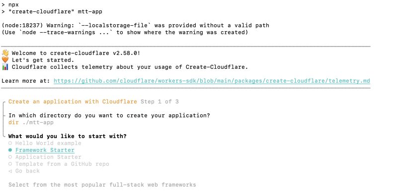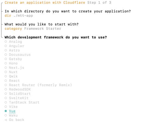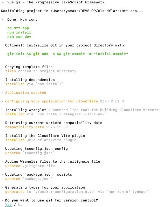 cd <作業フォルダー>npm create cloudflare@latest -- mtt-app