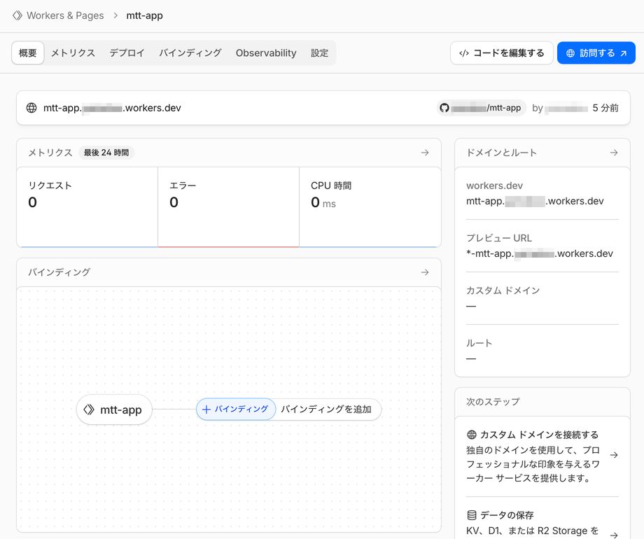The latest compatibility date supported by the installed Cloudflare Workers Runtime is "2025-12-02",but you've requested "2025-12-09". Falling back to "2025-12-02"...この変更をcommitして、GitHubにリポジトリを作成・pushします。