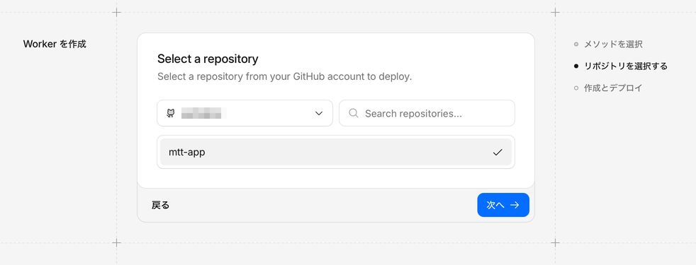 Workerの画面に戻って、GitHubのリポジトリを選びます。