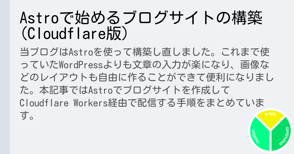 なお、Cloudflareを使ってAstroのブログサイトをデプロイすることも出来ます。Cloudflareのプラン上限や独自ドメインの価格などと比較して、ConoHa WINGなどのレンタルサーバーを選択するのもよいのではないかと思います。