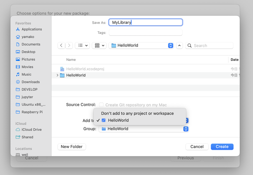 - Xcodeのメニューから、File -> New -> *Package…*を選んでパネルを開き、Libraryを選択する。